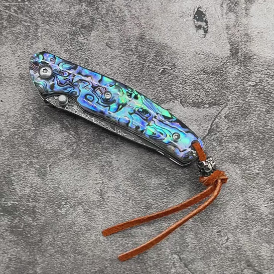 Exquisite Folding Pocket Knife with Abalone - Patterned Handle and Damascus - Style Blade