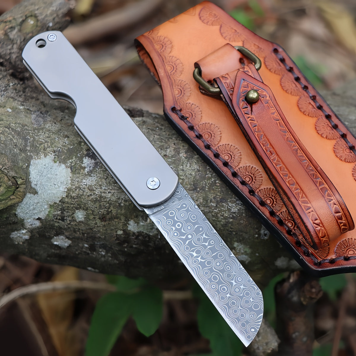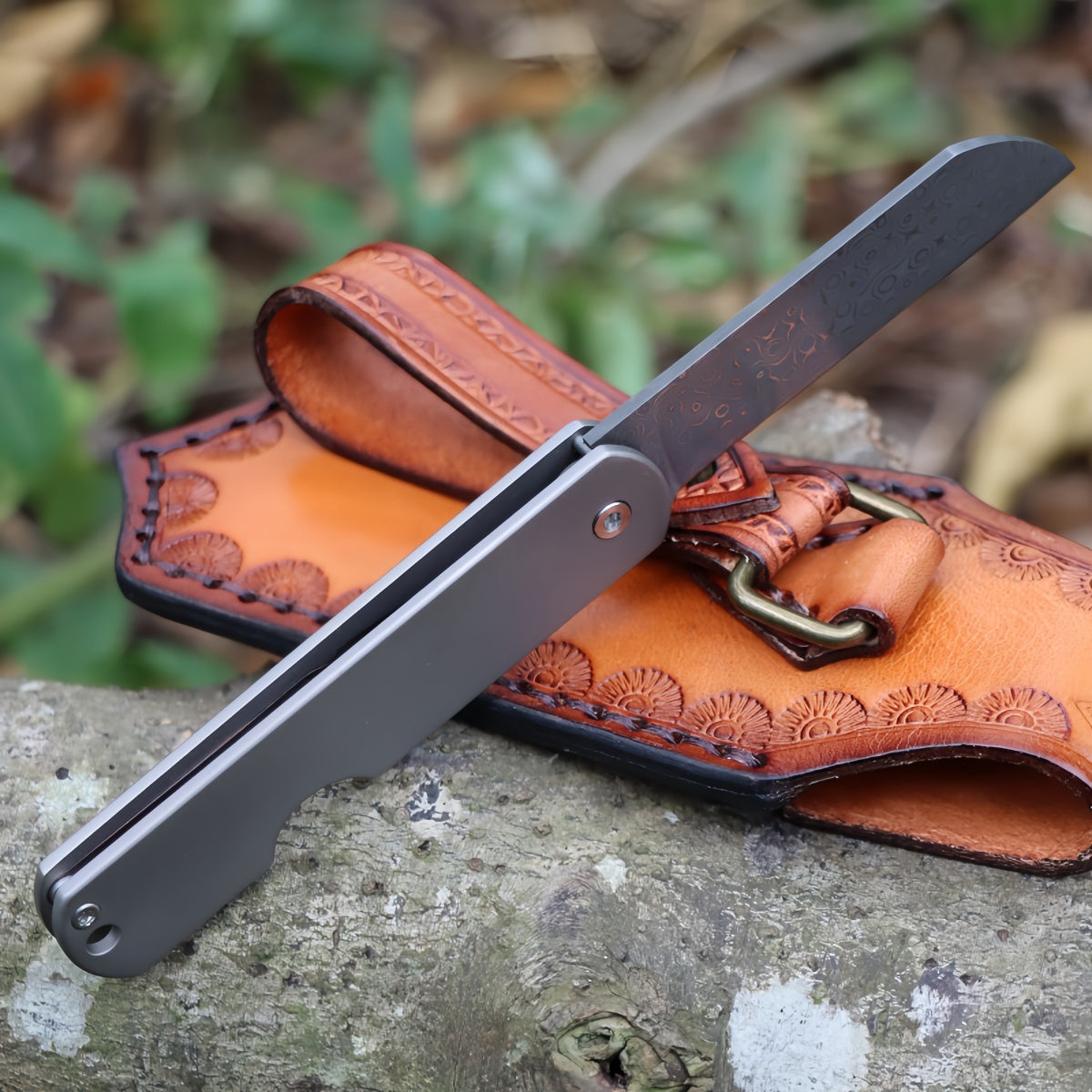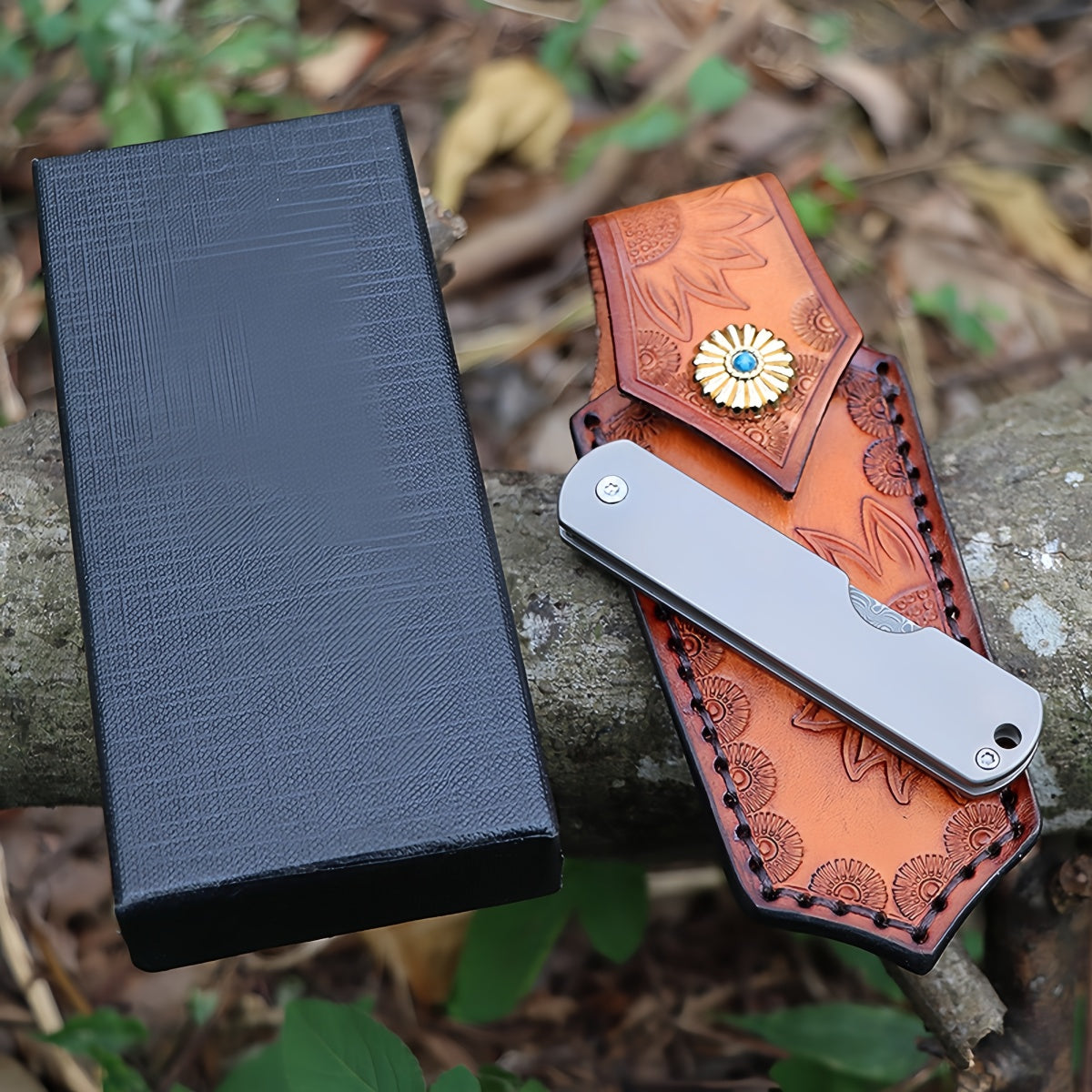 Exquisite Folding Pocket Knife with Hand survival tools- crafted Leather Sheath