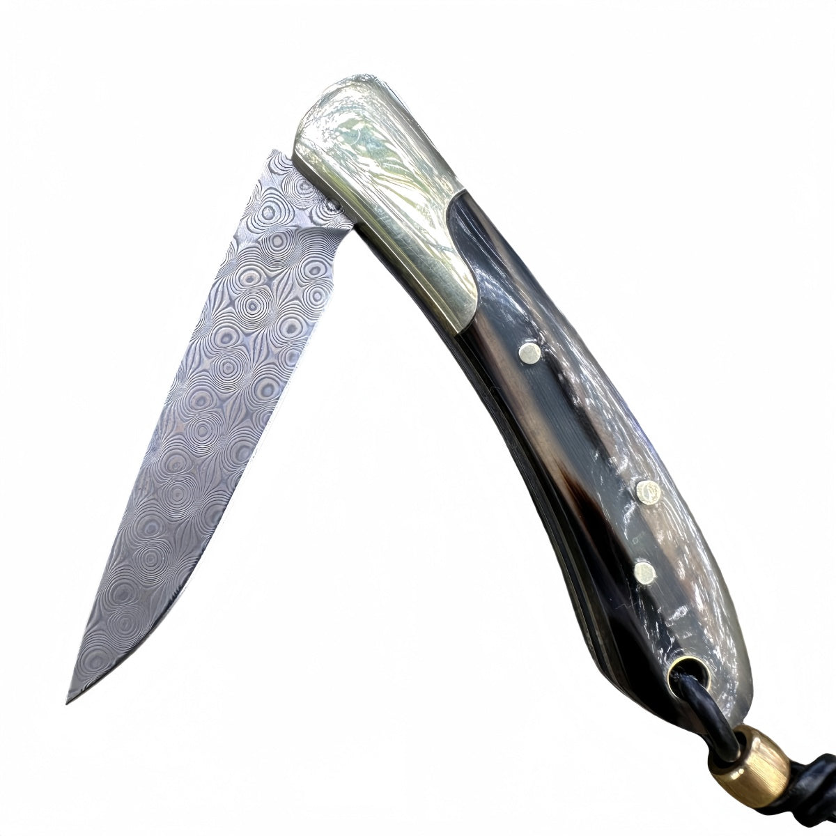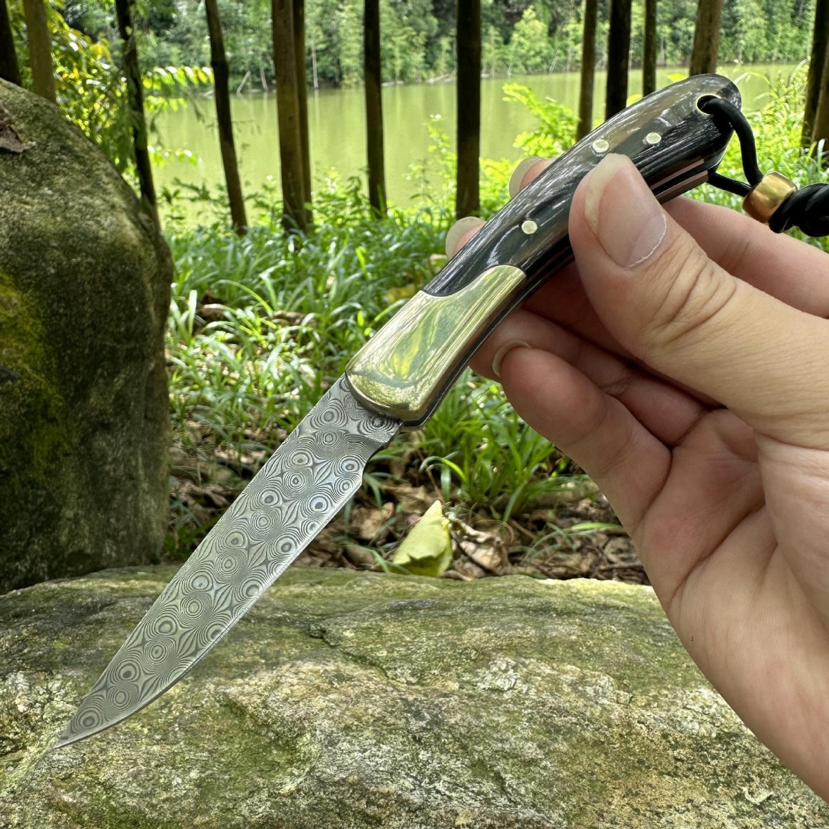 Hand - crafted Folding Pocket Knife with Damascus Steel Blade and Exquisite Handle for Outdoor and EDC survival tools