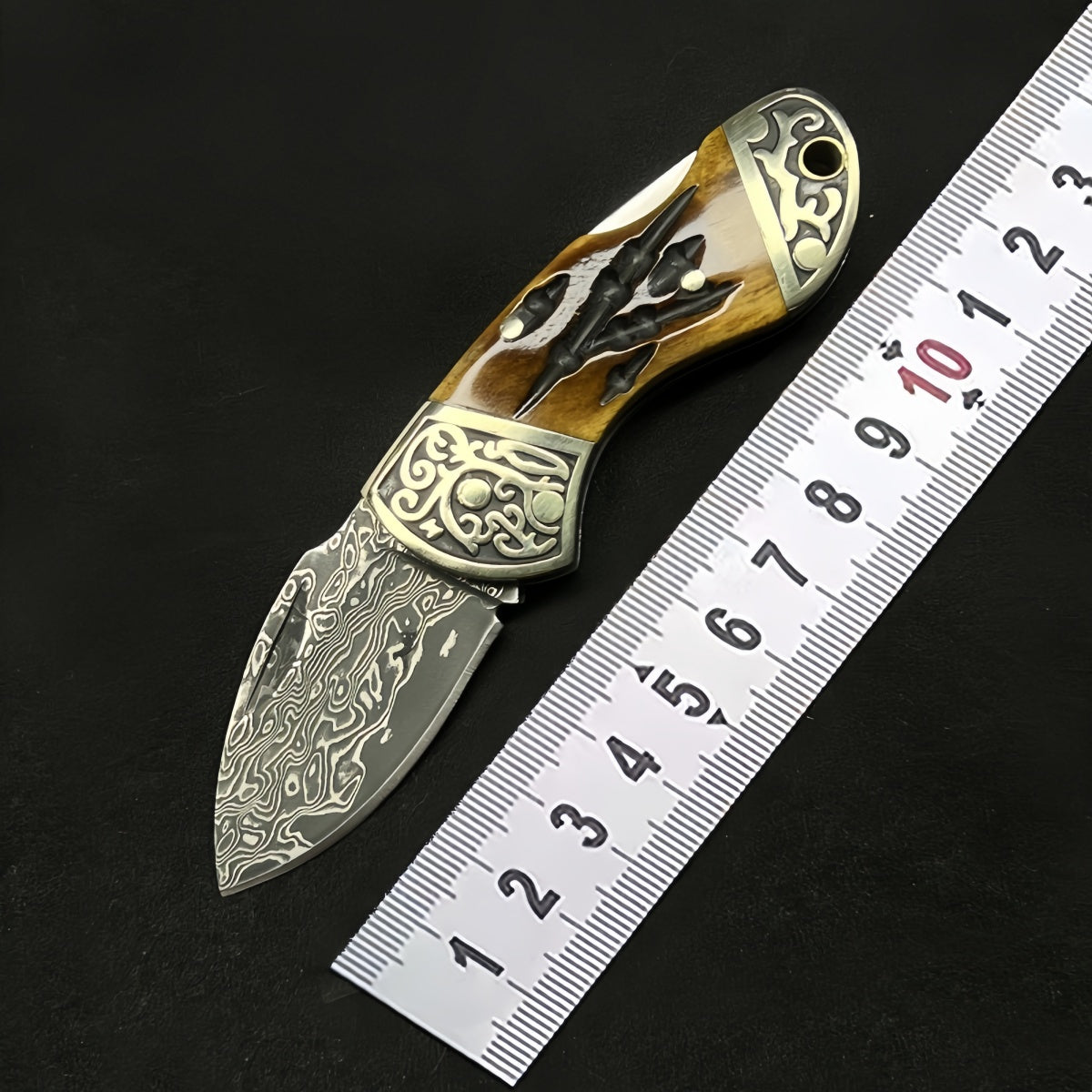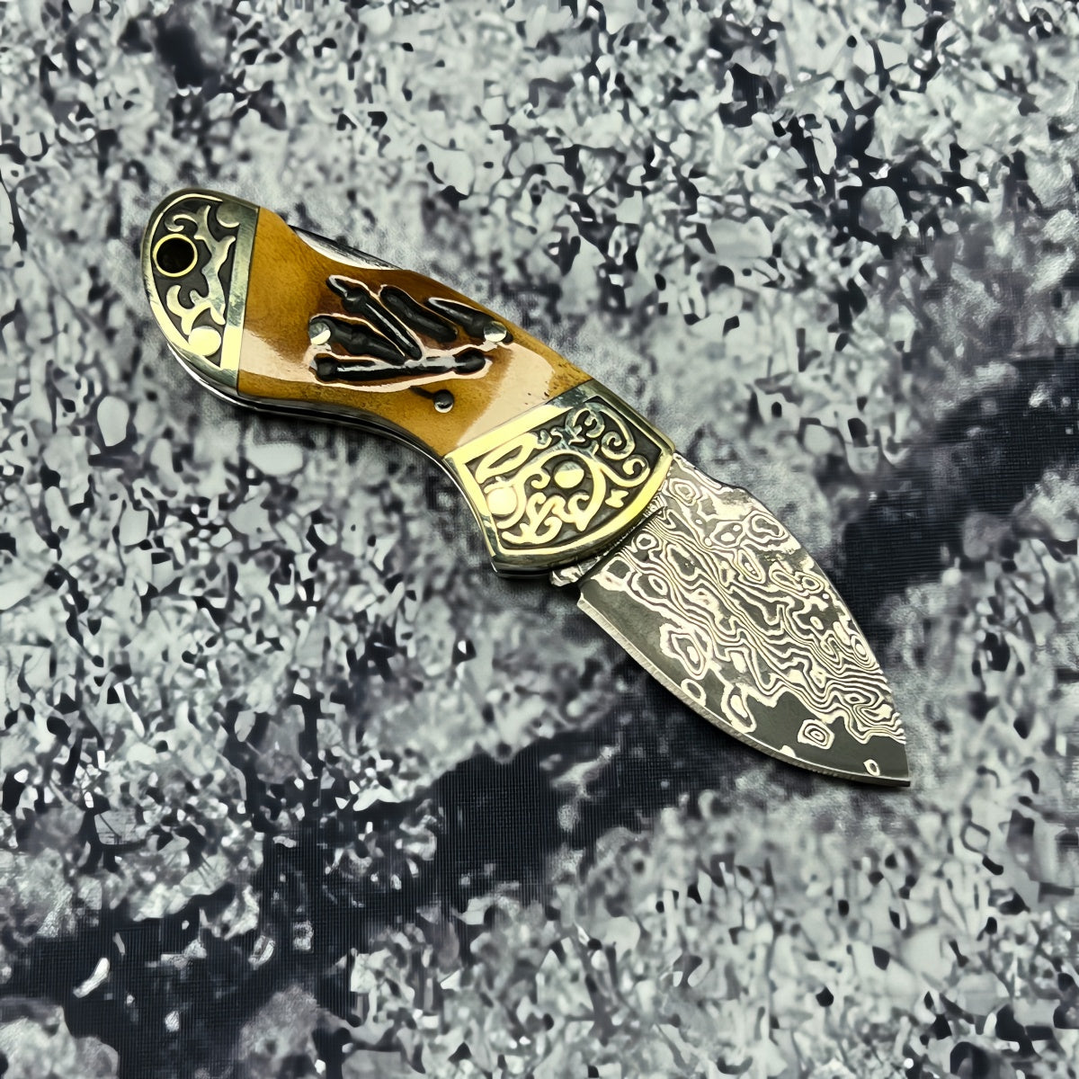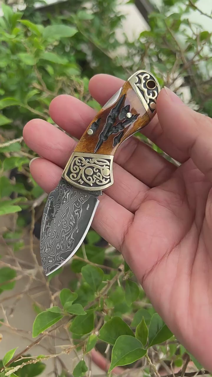 Unique Folding Pocket Knife survival tools- Hand-Forged Damascus Steel with Distinctive Handle