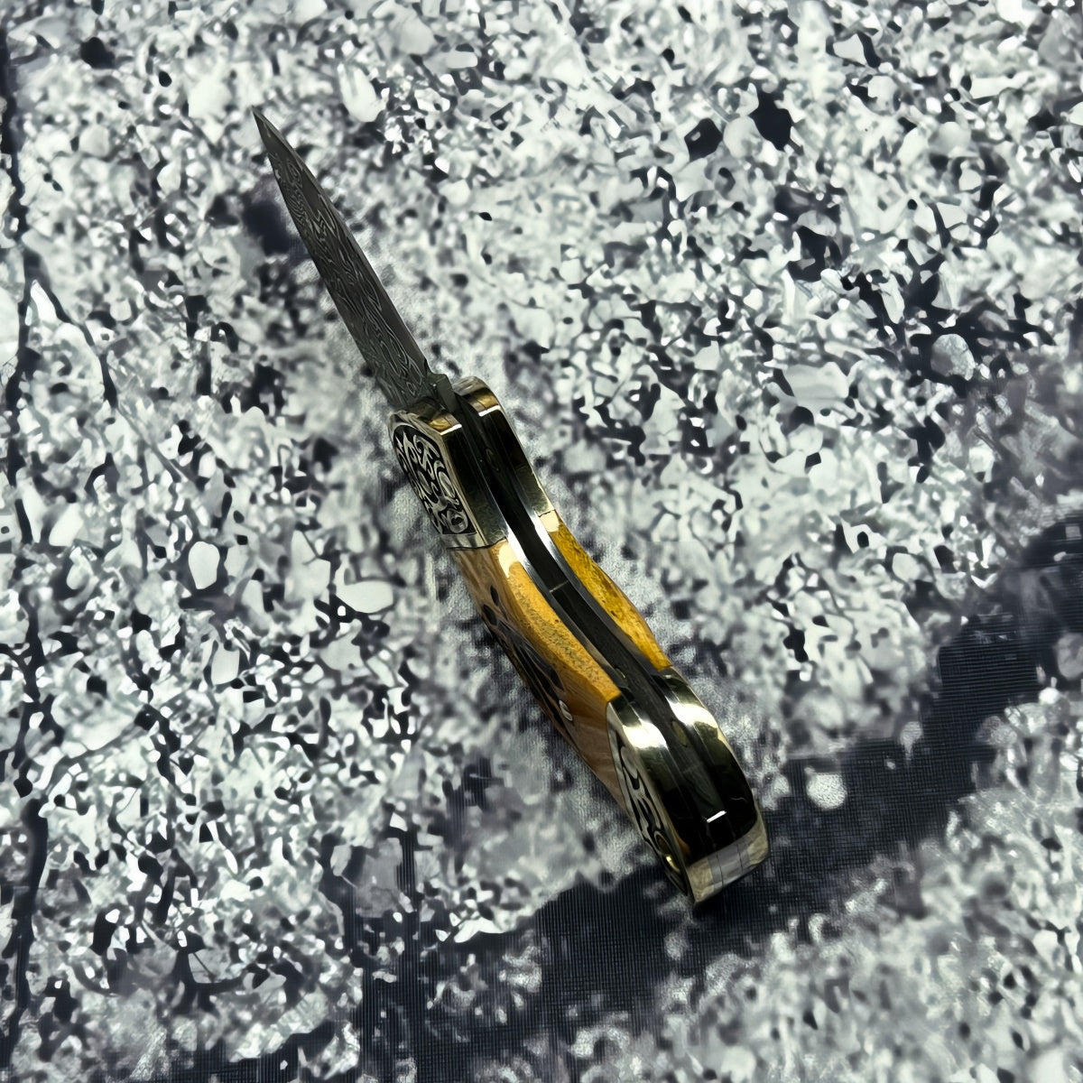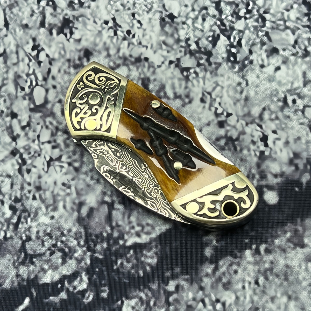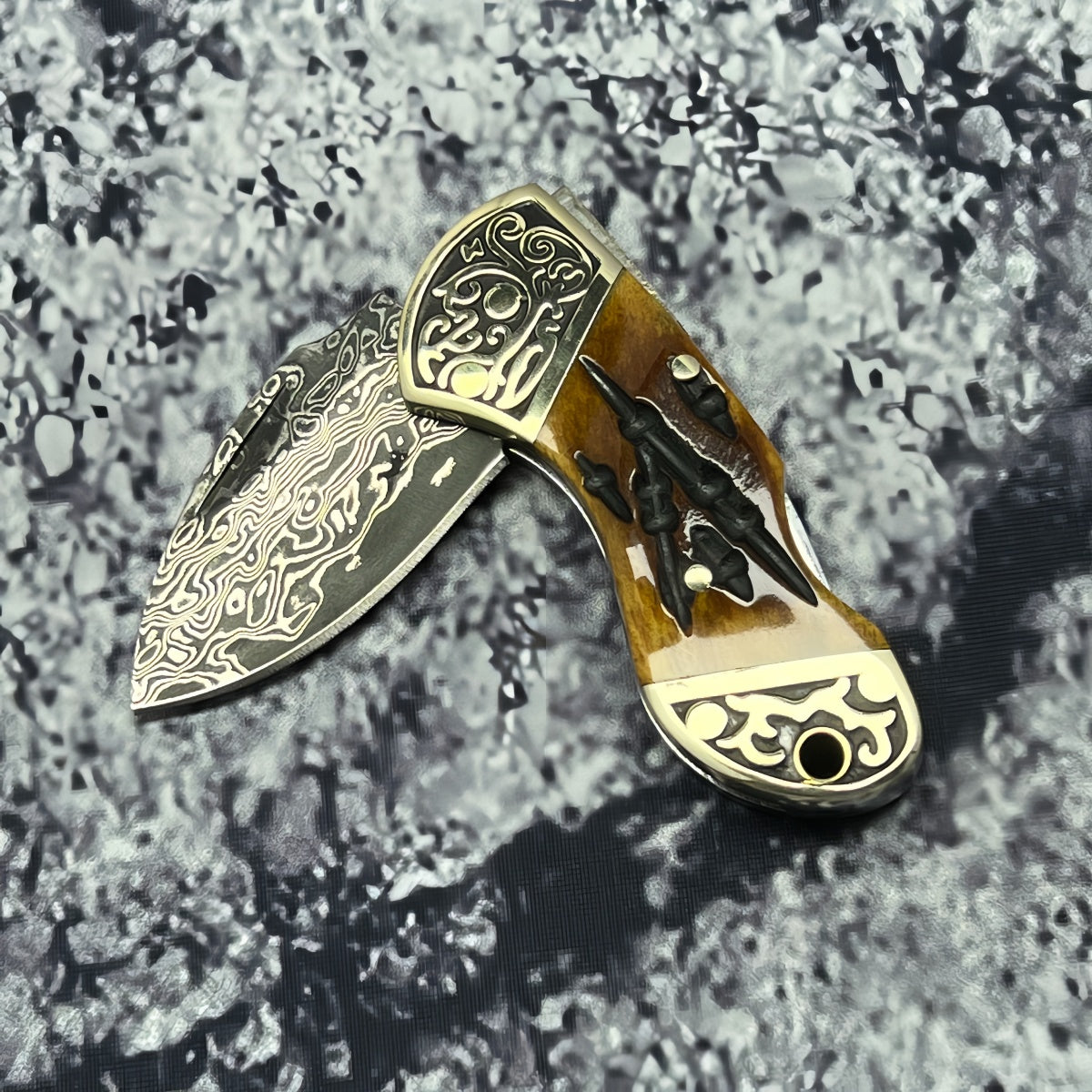 Rare Blade Material: The blade is forged from Damascus steel, offering exceptional sharpness and wear resistance. Its distinctive grain pattern is truly one-of-a-kind, ensuring each knife is a unique masterpiece.